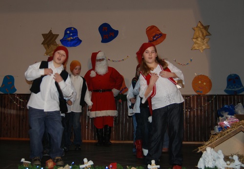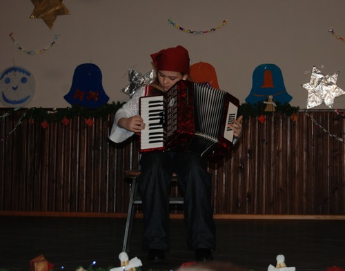 U prigodnom programu koji je uvježbao učitelj Zoran Vidaković sudjelovali su učenici od 1. do 3. razreda. Dinamičnom izmjenom pjesme, plesa, recitacija i kratkih igrokaza učenici su dočekali Djeda Božićnjaka koji im je podijelo darove.