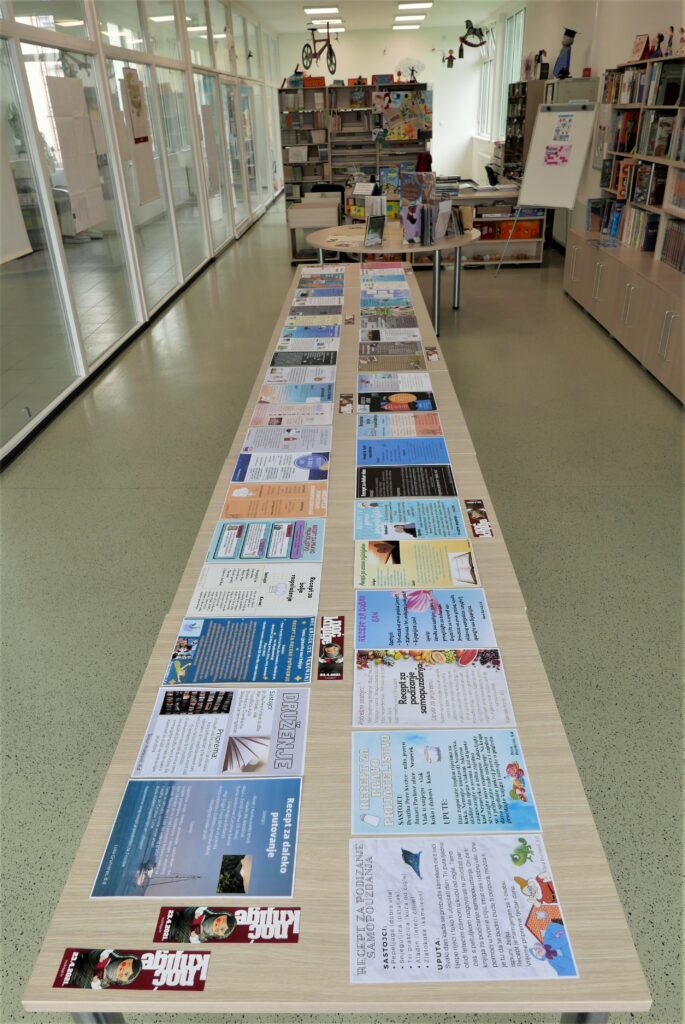 U sklopu izložbe knjižničarka je svakoj grupi održala predavanja o izradi plakata pomoću digitalnog alata Canva te govorila o važnosti čitanja s razumijevanjem. Također je spomenula važne obljetnice povezane s knjigom i čitanjem. Govorila je i o potrebi posjećivanja knjižnice i čitaonice te ljekovitoj moći knjige. Upoznala je skupine s osnovnim pravilima Zakona o autorskom pravu i srodnim pravima. Upozorila je učenike da se trebaju pridržavati pravila pri uporabi online izvora štiteći prava autora. Na primjerima izrađenih učeničkih postera pokazala je učenicima što je dobro, a što treba izbjegavati kad izrađuju poster na neku temu ili za neki događaj.