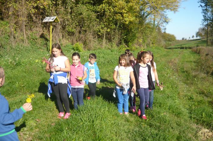 Nastavni dan započet u školskim klupama nastavili su u prirodi, šetnjom pitomim obroncima Bilogore do Prokljuvanaca. Da se putem ne izgube, orijentirali su se u prostoru pomoću kompasa i Sunca te uživali u ljepotama bilogorskog zavičaja, u šumama i livadama. Ponovili su nastavne sadržaje iz prirode i društva vezane uz godišnje doba jesen, orijentaciju u prostoru te živu prirodu i uvjete života. Brali su jesenske šumske plodove, šuštali po lišću, slušali šum toplog jesenskog vjetra u krošnjama drveća te uživali u ljepotama boja šarenog lišća.