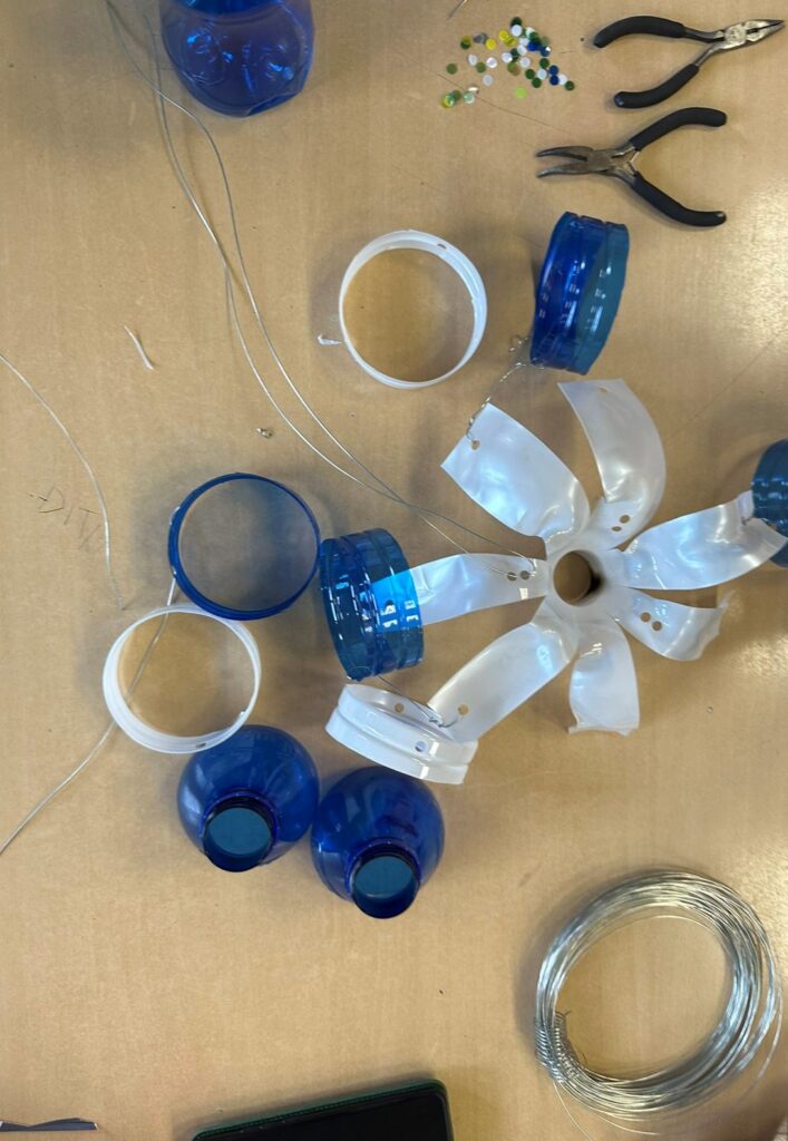 Potreban materijal za rad na ovoj radionici su bile plastične boce u boji, cvjećarska žica i kliješta kombinirke. Prema uputama su izrađeni mobili koji će krasiti učionice, a koji se također mogu izrađivati i s učenicima razredne nastave.