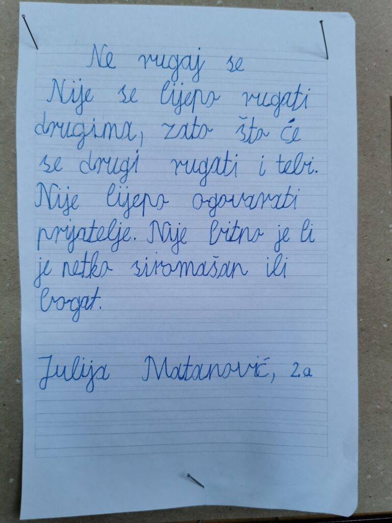 Pink Pub Quiz, međurazredne sportske igre, likovni i literarni radovi, radionice, debate, plakati, zidne novine, mnogo razgovora i međusobnog slušanja. Sve smo to, uz mnogo zabave, radili tijekom veljače. Djelatnice Obiteljskog centra iz Koprivnice su održale predavanja i radionice na temu prevencije vršnjačkog nasilja.