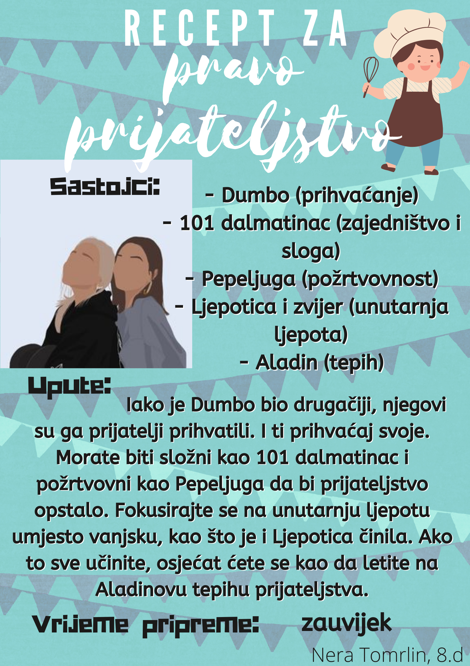 Nemojte prestati maštati, stvarati, igrati se, a na tom putu pomažu vam knjige. Ponekad ih za vas biraju drugi, ali postoji vrijeme i mjesto kada ih birate sami. Posegnite za knjigom koja vas mami i stvorite svoju novu priču. – poručuju vam Maja, Davorka i Nataša koje nisu zaboravile kako je biti dijete. Njima se pridružuju i naši kreativci s receptima…