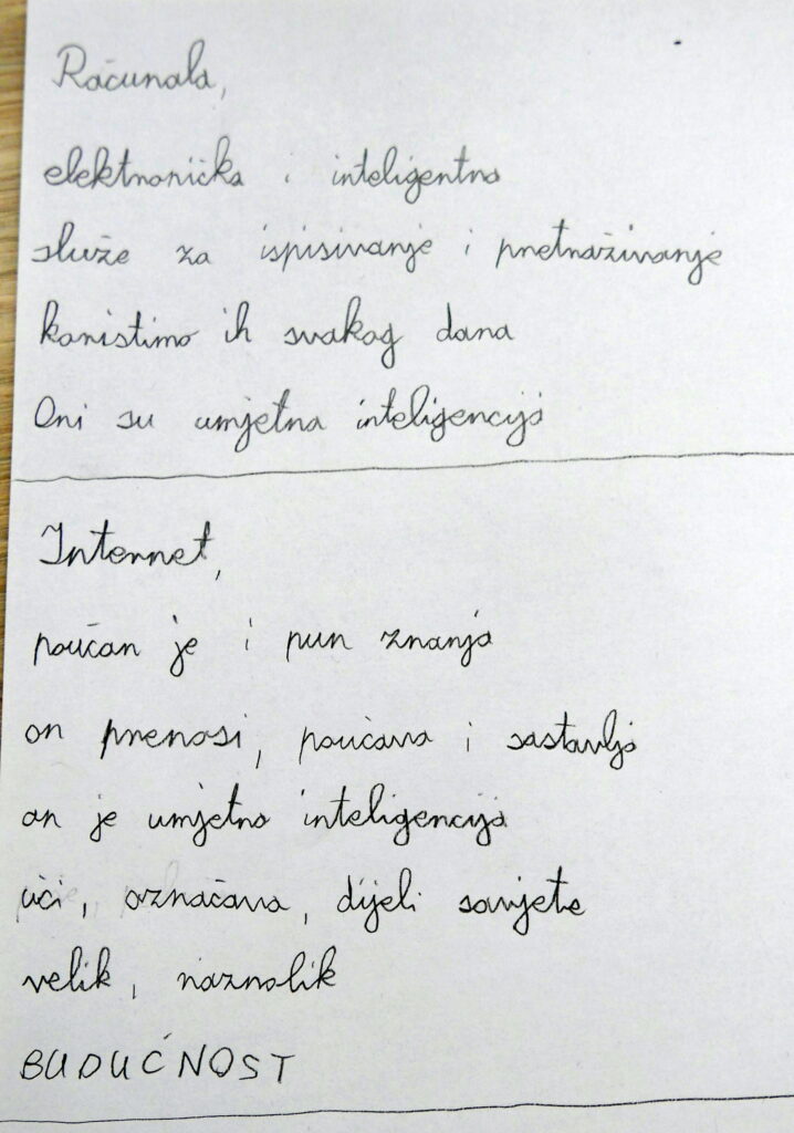 U programu Chat GPT učenici su zatražili umjetnu inteligenciju da im prema zadanim motivima napiše pjesme o Podravini, ljepotama našeg kraja, o moru… Evo nekih pjesmica u privitku koje je napisala umjetna inteligencija:
