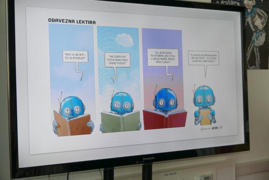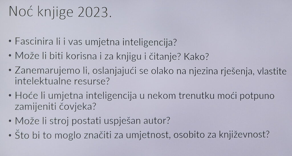 Tema ovogodišnje Noći knjige je umjetna inteligencija, a pitanje koje pokreće raspravu je sanjaju li roboti električne knjige? I mi smo se zapitali isto pitanje te smo u knjigama, filmovima, stripovima, programima ChatGPT i DALL·E potražili odgovor na to pitanje.