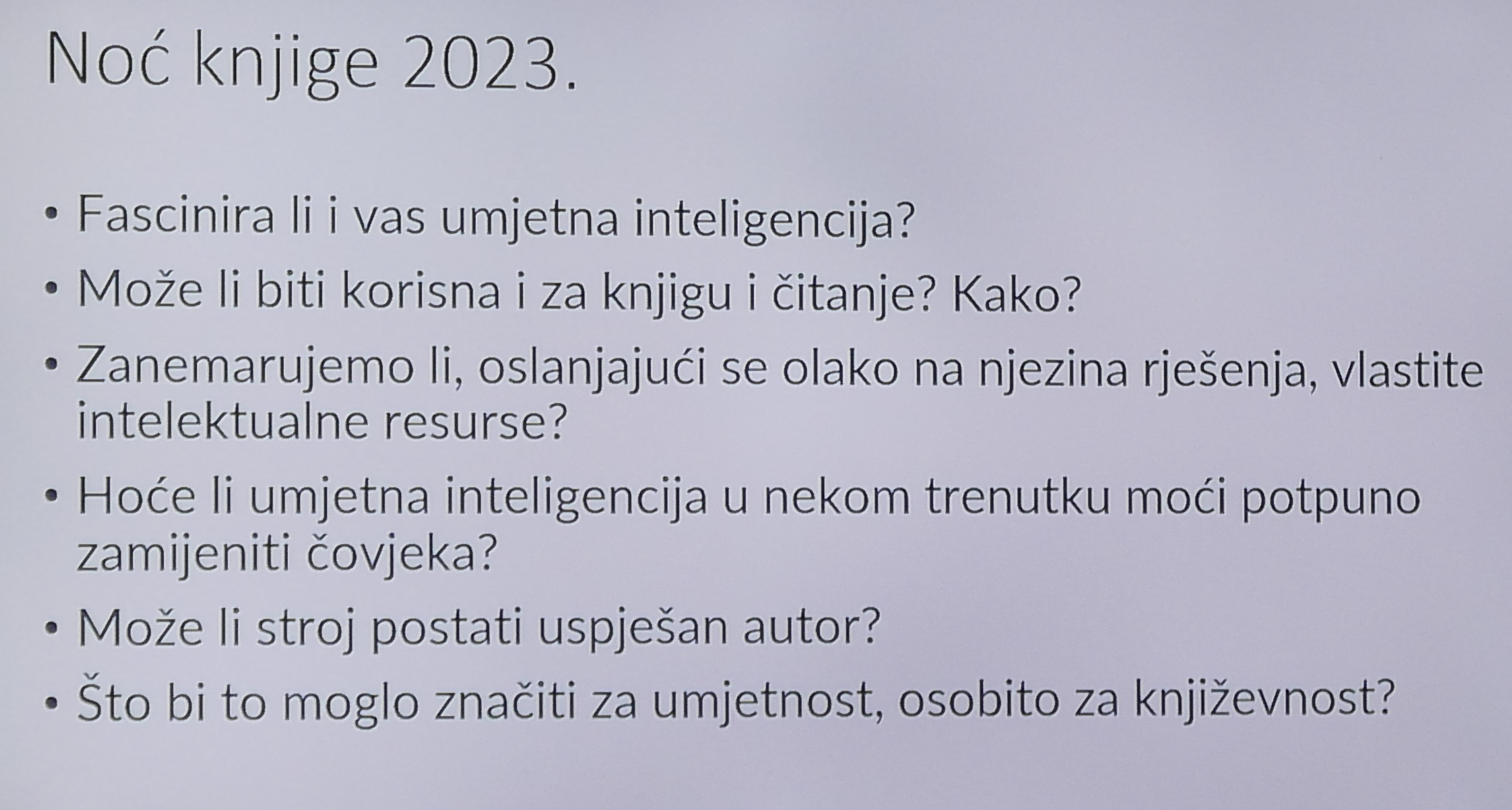 Tema ovogodišnje Noći knjige je umjetna inteligencija, a pitanje koje pokreće raspravu je sanjaju li roboti električne knjige? I mi smo se zapitali isto pitanje te smo u knjigama, filmovima, stripovima, programima ChatGPT i DALL·E potražili odgovor na to pitanje.