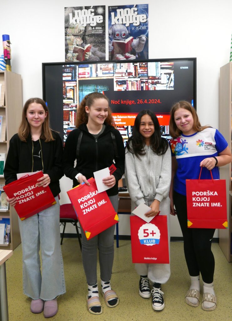 Noć knjige je manifestacija pokrenuta 2012. godine, kako bi se, bez zatvaranja očiju pred često nelijepom svakodnevicom, barem na jedan dan govorilo o čaroliji stvaranja i radosti čitanja knjiga. Cilj projekta je kroz jedinstvenu manifestaciju potaknuti kulturu čitanja i uvažavanja knjige kao civilizacijskog i kulturnog dosega te dati poticaj razgovoru o statusu i važnosti knjige u suvremenom društvu. Povod za to pružaju nam Svjetski dan knjige i autorskih prava (23. travnja) i Dan hrvatske knjige (22. travnja). U našoj se školi ova manifestacija održava od 2016. godine te se svake godine trudimo nadmašiti prethodnu. Ove smo godine tako u petak 26. travnja održali Noć knjige na drugačiji način, održavanjem kviza znanja.