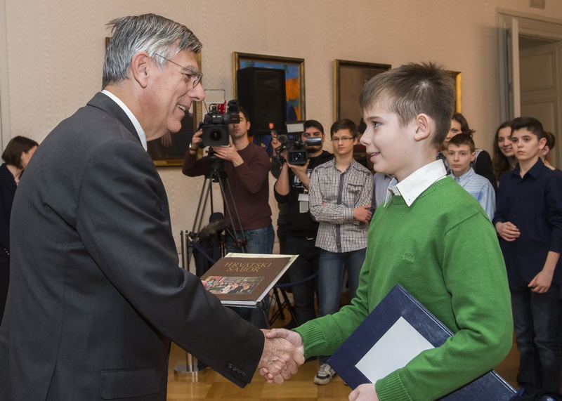 Predsjednik Hrvatskoga sabora akademik Željko Reiner dodijelio je u petak, 18.3.2016. priznanja i nagrade pobjednicima kviza "Koliko poznaješ Hrvatski sabor?".