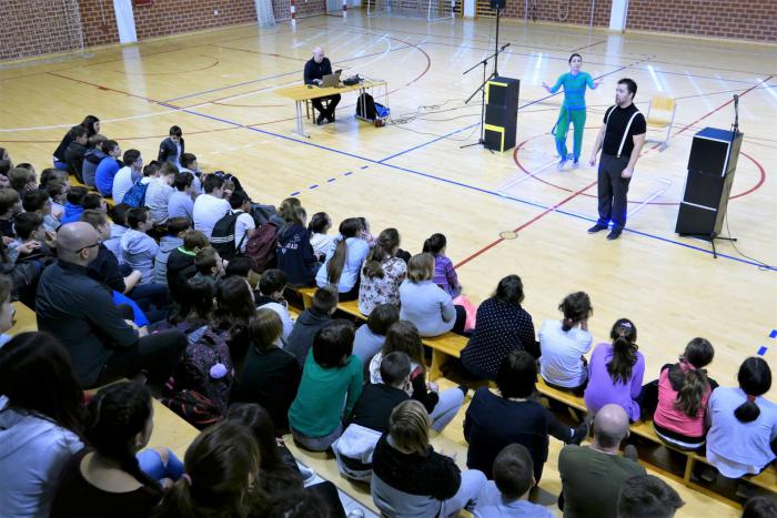 Prema kurikulumu, jučer je u našoj školi gostovalo kazalište iz Zagreba – Teatar "Tirena". Izvodili su kazališnu predstavu "Generacija" na temu ovisnosti o društvenim mrežama. Njihovi programi posjeduju prepouruku Agencije za odgoj i obrazovanje.