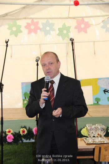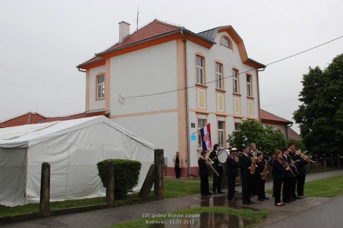 Uz glazbu Puhačkog orkestra DVD-a Đurđevac, učiteljica Područne škole Budrovac, Olga Lazar i njezini učenici, s radošću su dočekali svoje brojne goste i uzvanike te ih uputili u učionicu škole gdje je bila priređena izložba fotografija iz prošlosti škole te prikaz povijesti školstva u Budrovcu do današnjih dana. S velikim interesom, uz prisjećanja na prošle dane, pokušavajući se prisjetiti svojih učitelja ili školskih prijatelja sa starih fotografija, posjetioci su razgledali izložbu te se upoznali i s aktivnostima učenika i učiteljice današnje područne škole. Prigodni program učenika Područne škole Budrovac, koji je pripremila njihova učiteljica, održan je u školskom dvorištu. Ni kiša i loše vrijeme nisu omeli male učenike da svojom radošću, pjesmom i veselim osmijehom čestitaju svojoj školici njezin stoti rođendan te izmame posjetiocima pokoju suzu. Među uzvanicima su bili zamjenik župana Koprivničko-križevačke županije, gospodin Ivan Pal, gradonačelnik grada Đurđevca, gospodin Slavko Gračan te njegova zamjenica, gospođa Marijana Markešić, ravnatelj škole, gospodin Marijan Vinković, brojne kolegice i kolege učitelji s kojima škola u Budrovcu surađuje ili koji su u njoj radili. Pozivu su se odazvali i učitelji u mirovini koji su nekada radili u školi: Katica Mramor, Dorotea Kovač, Ivan Periša i Ivan Filjar kao i bivši ravnatelj u mirovini Antun Krupski. Okupili su se i predstavnici svih mjesnih udruga s kojima škola u Budrovcu redovito surađuje: Mjesni odbor, Udruga žena, Caritas župe Budrovac, DVD, Lovačka udruga Jelen, Đurđevac, brojni prijatelji škole koji su pomogli organizaciji proslave, roditelji učenika te mještani Budrovca. Učiteljica Olga Lazar govorila je o povijesti školstva u Budrovcu dok je o značaju škole za mjesto govorila dosadašnja predsjednica MO Budrovac, gospođa Marija Markuš. Ravnatelj škole, gospodin Vinković , kao domaćin, pozdravio je nazočne te čestitao na velikoj obljetnici značajnoj za ovo mjesto, dok se bivši učitelj, gospodin Ivan Periša prisjetio svog službovanja u Budrovcu davne 1956. godine. Udruga žena Budrovac predstavila se pjesmom i plesom „Budrovačko ravno polje“, a gradonačelnik grada Đurđevca pohvalio je aktivnost škole i mjesta i njihovu suradnju. Na kraju se nazočnima obratio gospodin Ivan Pal i istaknuo velik značaj postojanja područnih škola za mala mjesta te radost što je Županija obnovila pročelje i krovište ove stogodišnje ljepotice.