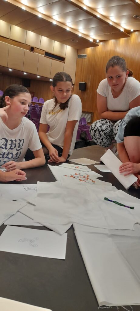 Učenice pjevačkog zbora Osnovne škole Đurđevac aktivno su sudjelovale u kreativnoj radionici izrade tradicijskih bluzi đurđevačkog kraja. U suradnji s Kulturno-umjetničkim društvom Petar Preradović Đurđevac, organizirane su radionice prikaza cijelog procesa izrade cvjetnih ukrasa na krojevima novih bluzi. U izradi  cvjetnih motiva su se priključili i polaznici Etno skupine dječjeg vrtića Maslačak, Đurđevac. Nakon ručne izrade preslikavanja cvjetnih motiva na materijal tzv. fodrukanje, slijedi našivavanje tradicijskog veza zatim šivanje bluzi i završno heklanje u izradi vezilja kazivačica.