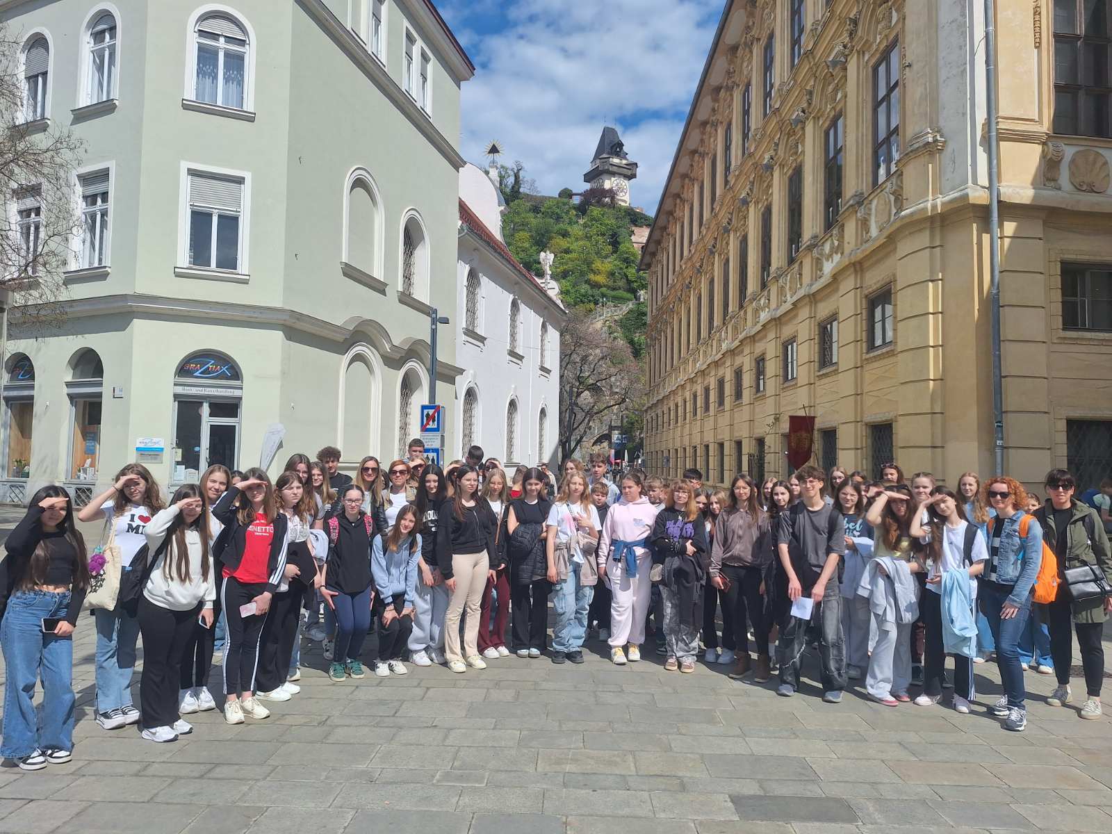 Učenici 6., 7. i 8. razreda OŠ Đurđevac koji pohađaju izbornu nastavu Njemačkog jezika posjetili su Graz, zajedno sa svojim učiteljicama Majom Šalamon Nemet i Davorkom Hrženjak, 17. travnja 2026.