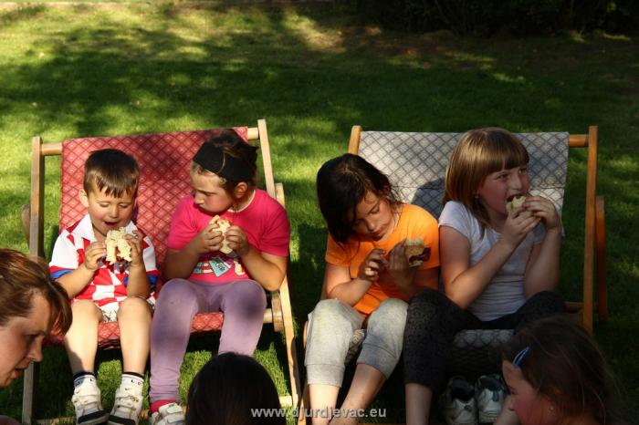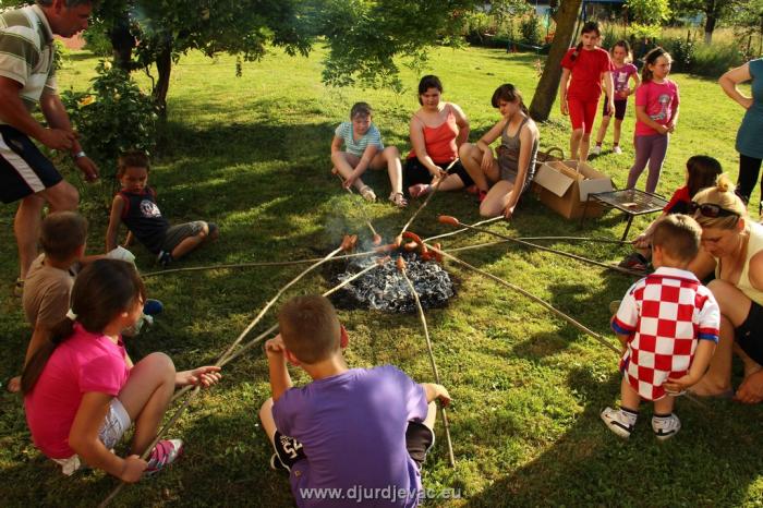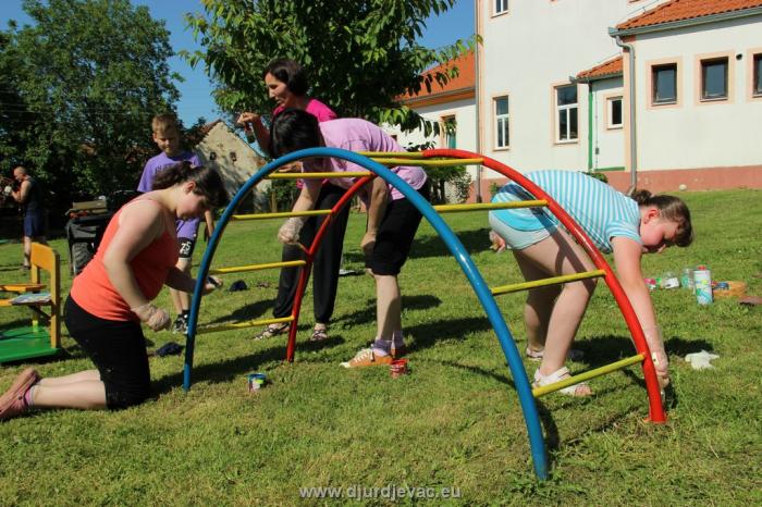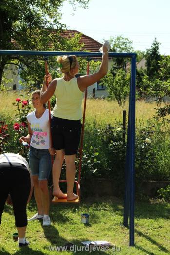 Tako je bilo u dvorištu Područne škole Budrovac u subotu, 7. lipnja 2014. jer su toga dana učenici sa svojim roditeljima i učiteljicom Olgom Lazar uredili ljuljačke, klackalicu i vrtuljak, njihovo najdraže mjesto za igru u svoje slobodno vrijeme. Najprije su brusnim papirom skinuli staru boju i potrgane daske, a zatim su nanijeli novu boju (dar matične škole) i pričvrstili nova sjedala i naslone (dar obitelji Đukić, roditelja učenice Tene). Na kraju su docrtali cvjetiće, loptice i srca te je dječje igralište zasjalo novim sjajem. Za to vrijeme jedan od roditelja već je pripremao vatru i stvarao žar na kojem je svaki učenik sebi na štapu pekao kobasicu. Bile su slasne i uz sok i sladoled, mali su se radnici dobro osvježili i osnažili za igru „graničari“ koju su odigrali sa svojim roditeljima. Smijehu i navijanju nije bilo kraja, jer iako su djeca u igri sa svojim roditeljima izgubila, pokazali su da se nisu umorili te su igru nastavili sami. Na kraju dana, zadovoljni obavljenim poslom, igrom i druženjem, otišli su svojim kućama uz riječi: „Jedva čekamo ponedjeljak kada ćemo se ponovno poigrati na svom lijepo uređenom dvorištu.“