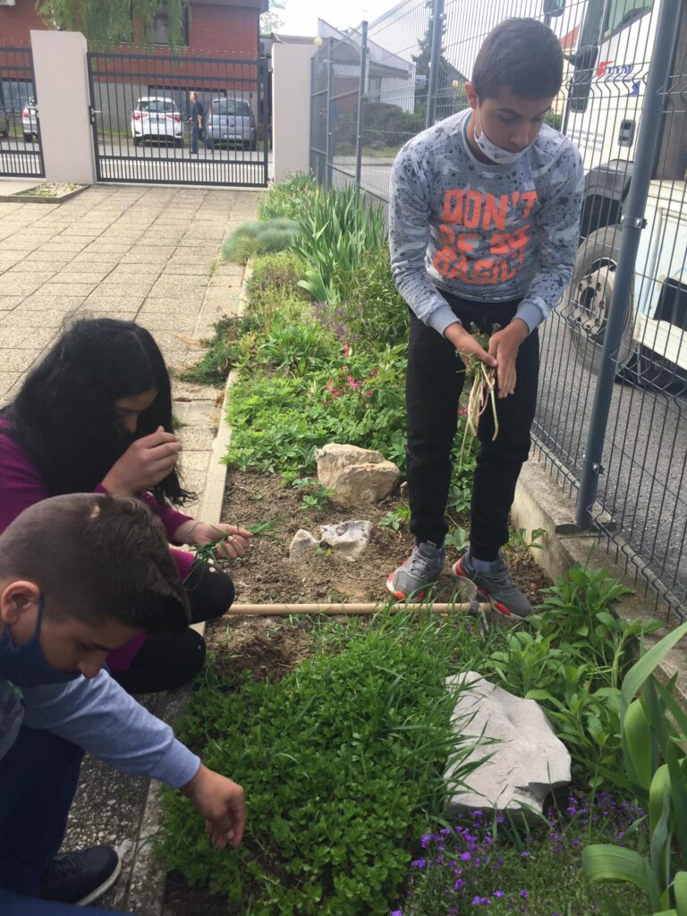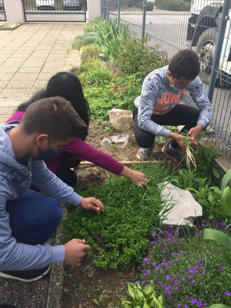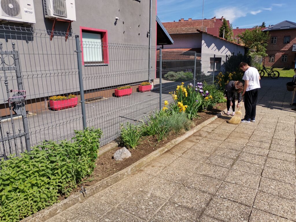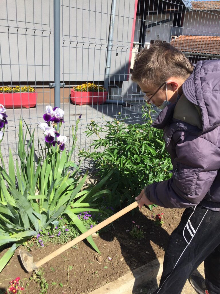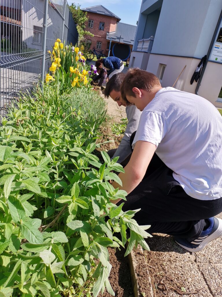 Dvorište škole, vanjski je prostor za učenje i igru kao i učenje putem igre. Na satima Tehničke kulture, učenici od 5. do 8. razreda Odjela za učenike s teškoćama u razvoju, uređivali su školski cvjetnjak. Uređenju cvjetnjaka, pridružili su se i učenici 3. odgojno-obrazovne skupine koji su zasadili donirane sadnice cvijeća roditelja Popadić. Ovo je bila praktična prilika podsjetiti se koje biljke rastu u našem cvjetnjaku, kako se biljke njeguju, koje alate koristimo i što su korovi. Učenici su bili motivirani za rad i vrednovali aktivnost uređenja cvjetnjaka visokom razinom osobnog zadovoljstva.
